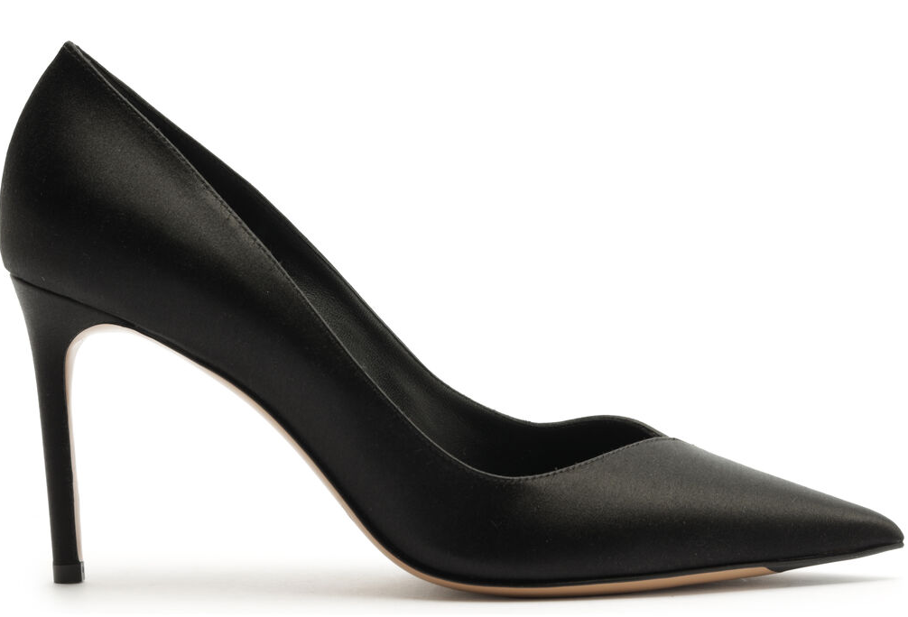 Assinada pela stylist Micaela Erlanger, a escolha traduz uma elegância precisa e atemporal, alinhada ao estilo sofisticado da atriz. O modelo, exclusivo para o mercado US, é confeccionado em cetim e apresenta salto de 85 mm, combinando silhueta clássica com acabamento refinado.